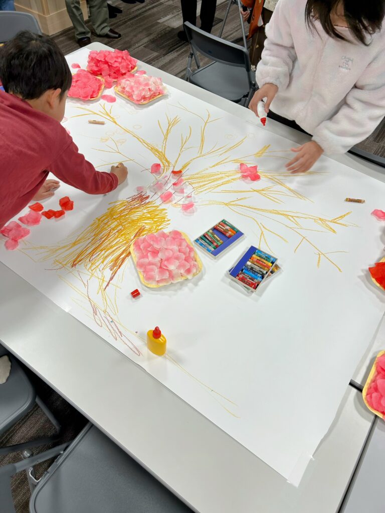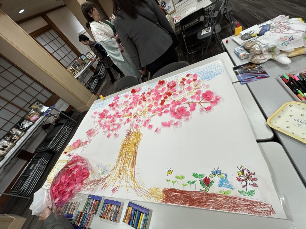 完成したときには、会場全体がパッと華やぎ、まるで本物の桜が満開になったかのような、温かい春の空気に包まれました。