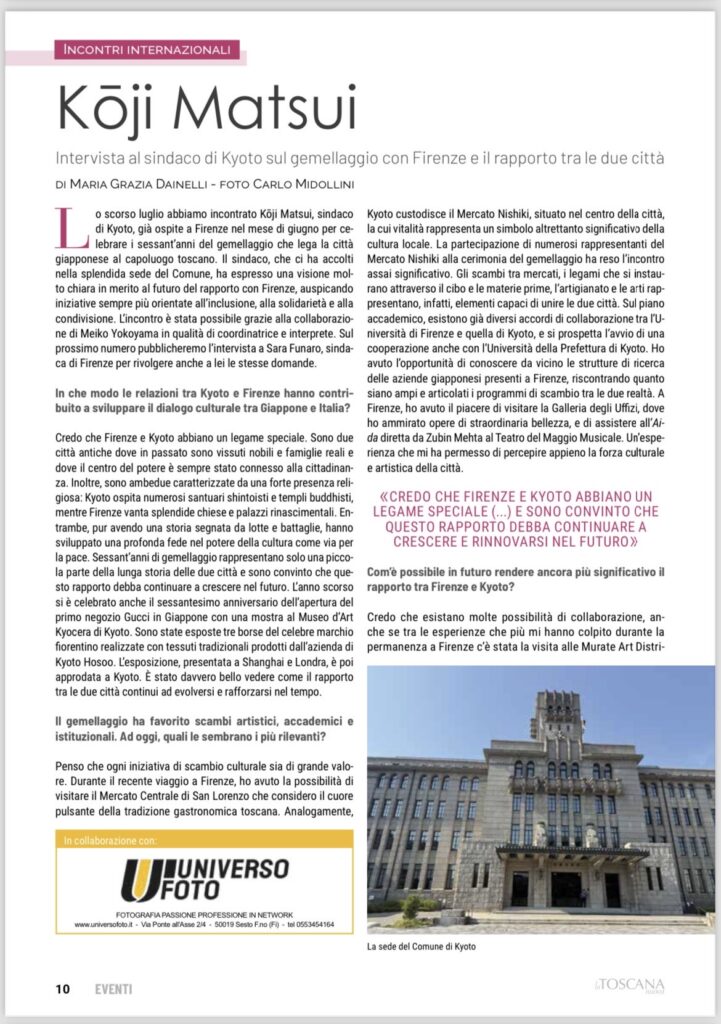 ― 美術誌『La Toscana Nuova』掲載:京都市 松井孝治市長インタビュー記事のご紹介 ―